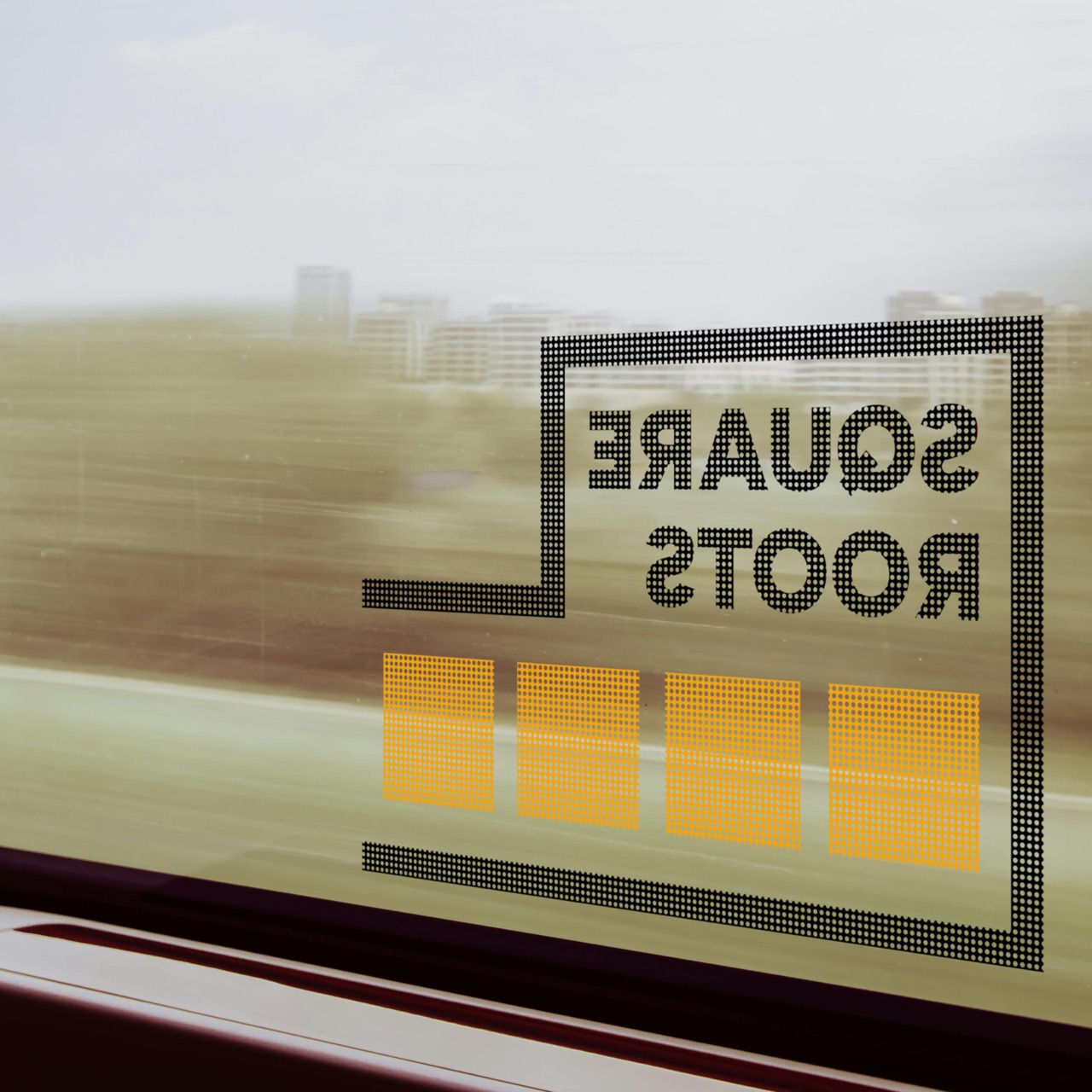 wie die sicht aus dem inneren eines Wagons auf das Logo, wenn es auf die Fensterscheibe geklebt